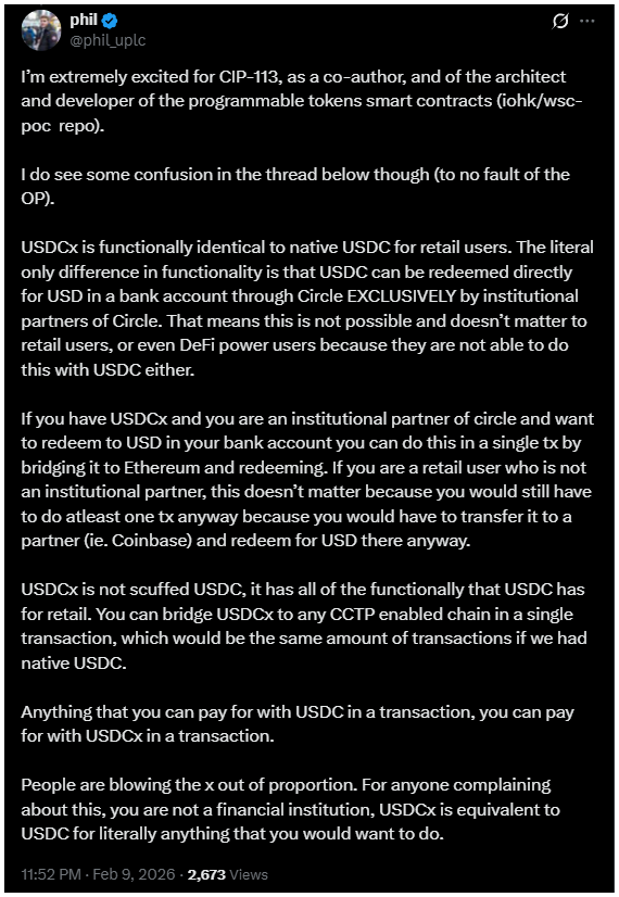 Az USDCx 1:1 arányban fedezett USDC-tartalékkal működik, és a felhasználók számára gyakorlatilag ugyanúgy viselkedik majd, mint a hagyományos USDC.
