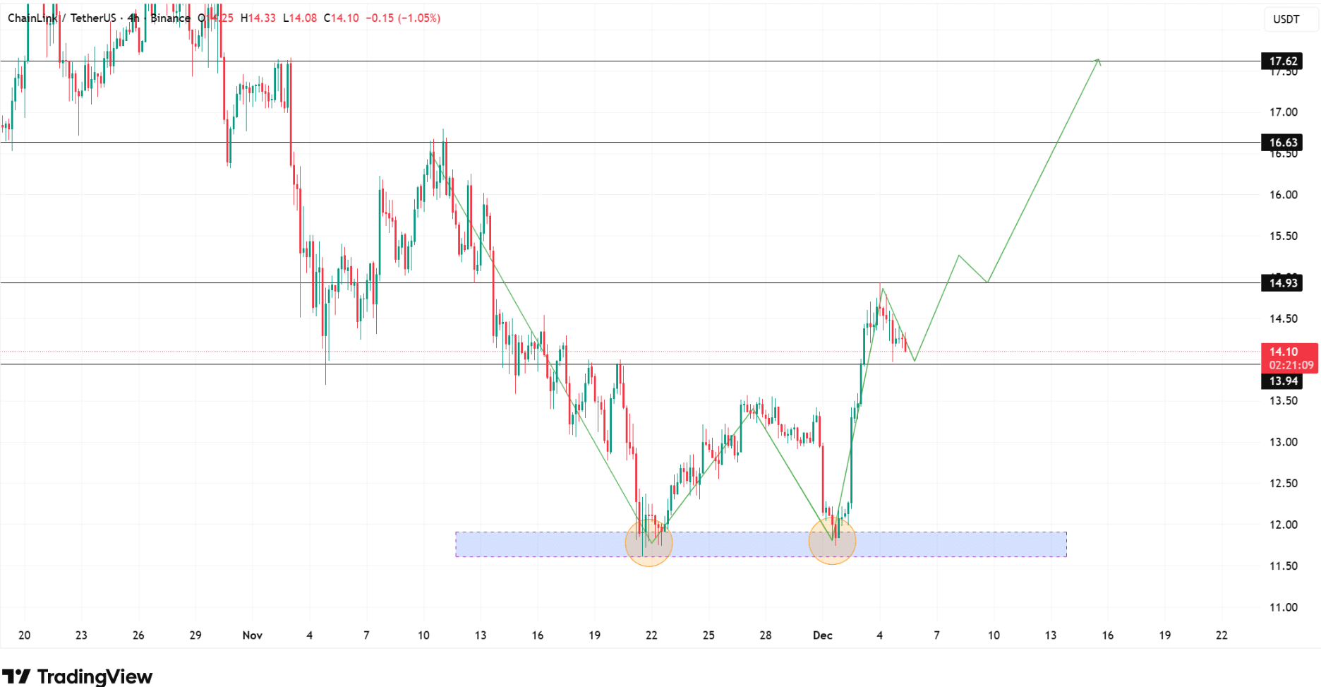 Ha a finanszírozás tovább nő, és a piac 13,94 dollár felett marad, a LINK hamarosan megpróbálkozhat a teljes kitöréssel.