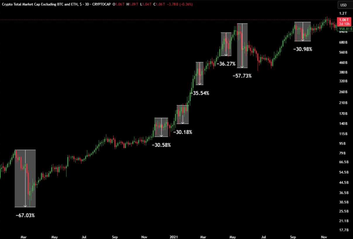 Több más ciklusban is láthattunk 30–40%-os visszaeséseket, amelyeket rendre hatalmas altcoin-fellendülések követtek.