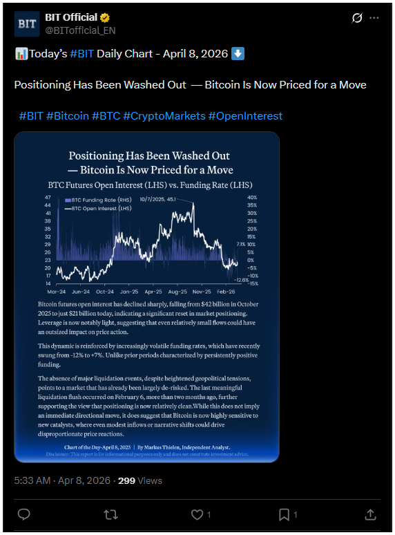 A Markus Thielen on-chain szakértő nevével jegyzett BIT-jelentésben az áll, hogy a pozíciók már kiürültek, és a nyitott érdekeltség felére csökkenése azt mutatja, hogy a kereskedők mindenhol újraértékelik kitettségüket.
