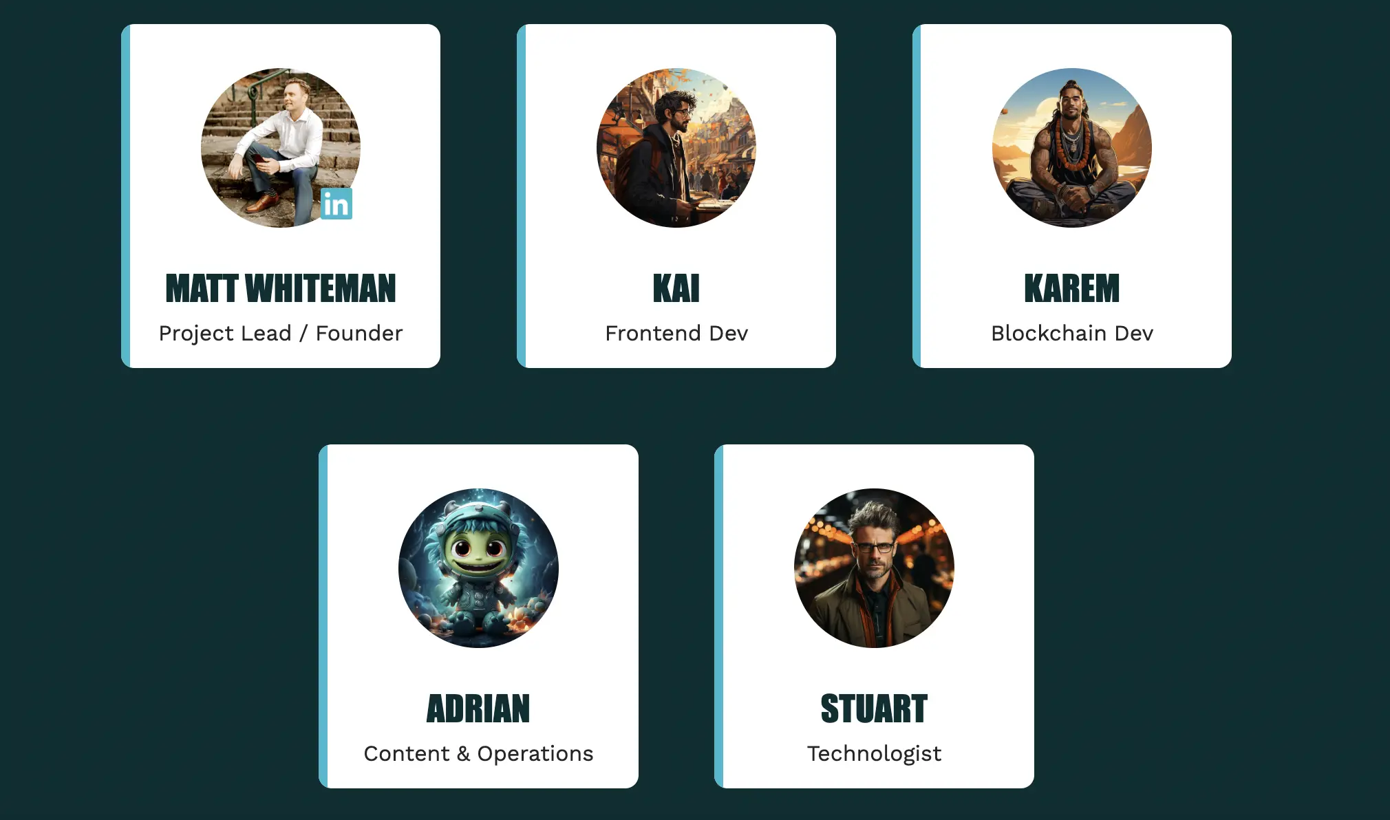 A Meme Kombat további oszlopos tagjai: Kai, front-end fejlesztő, és Karem, blokklánc-szakértő. Mindannyian azon dolgoznak, hogy a projekt folyamatosan növekedjen és fejlődjön.