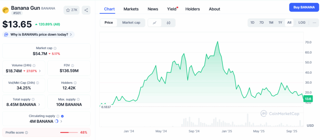 A Banana Gun (BANANA) 1,2 millió dolláros privát tőkebevonásból nőtt 276 millió dolláros piaci értékre, ami 230-szoros növekedést jelentett.