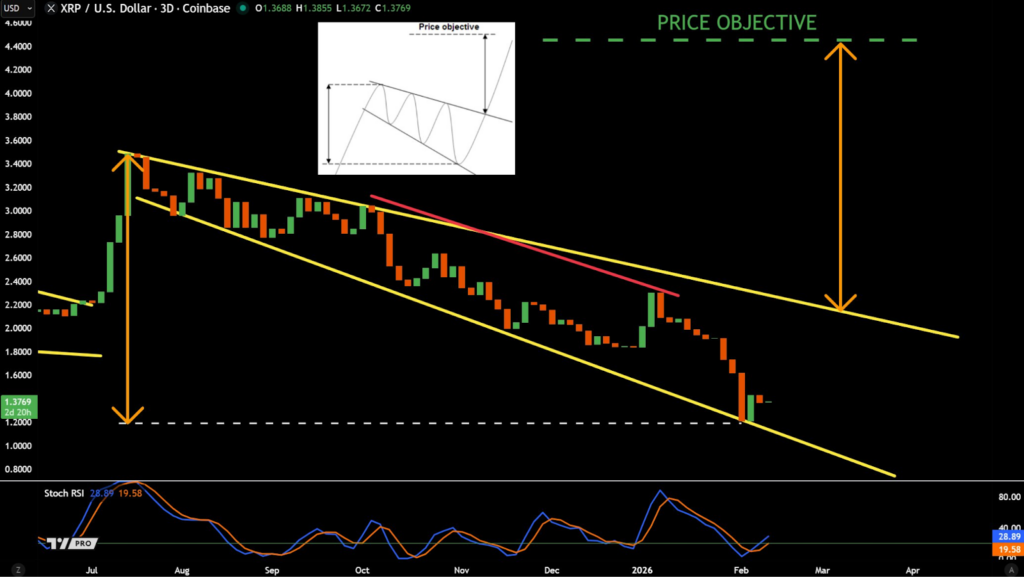 Forrás: XRP 3-Day Descending Wedge + Stochastic RSI on TradingView