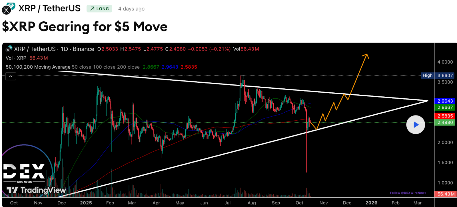 Egy 2,60 dollár feletti elmozdulás 3,20 dollár felé nyithat utat, és akár 5 dollárig is emelkedhet, ha a tőkebeáramlás felgyorsul a következő piaci szakaszban.